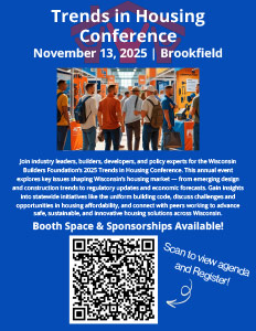 This premier annual event brings together builders, developers, policymakers, and industry leaders to discuss the future of housing in Wisconsin. Attendees will gain insights into emerging design and construction trends, regulatory and policy updates, housing affordability challenges, and economic forecasts shaping our industry.